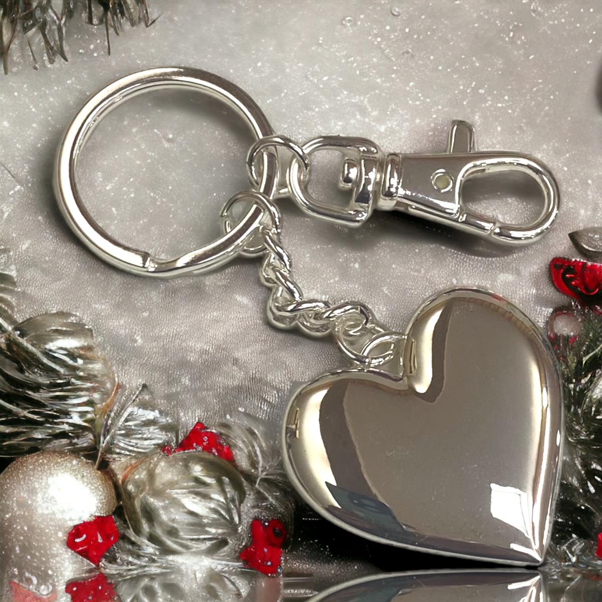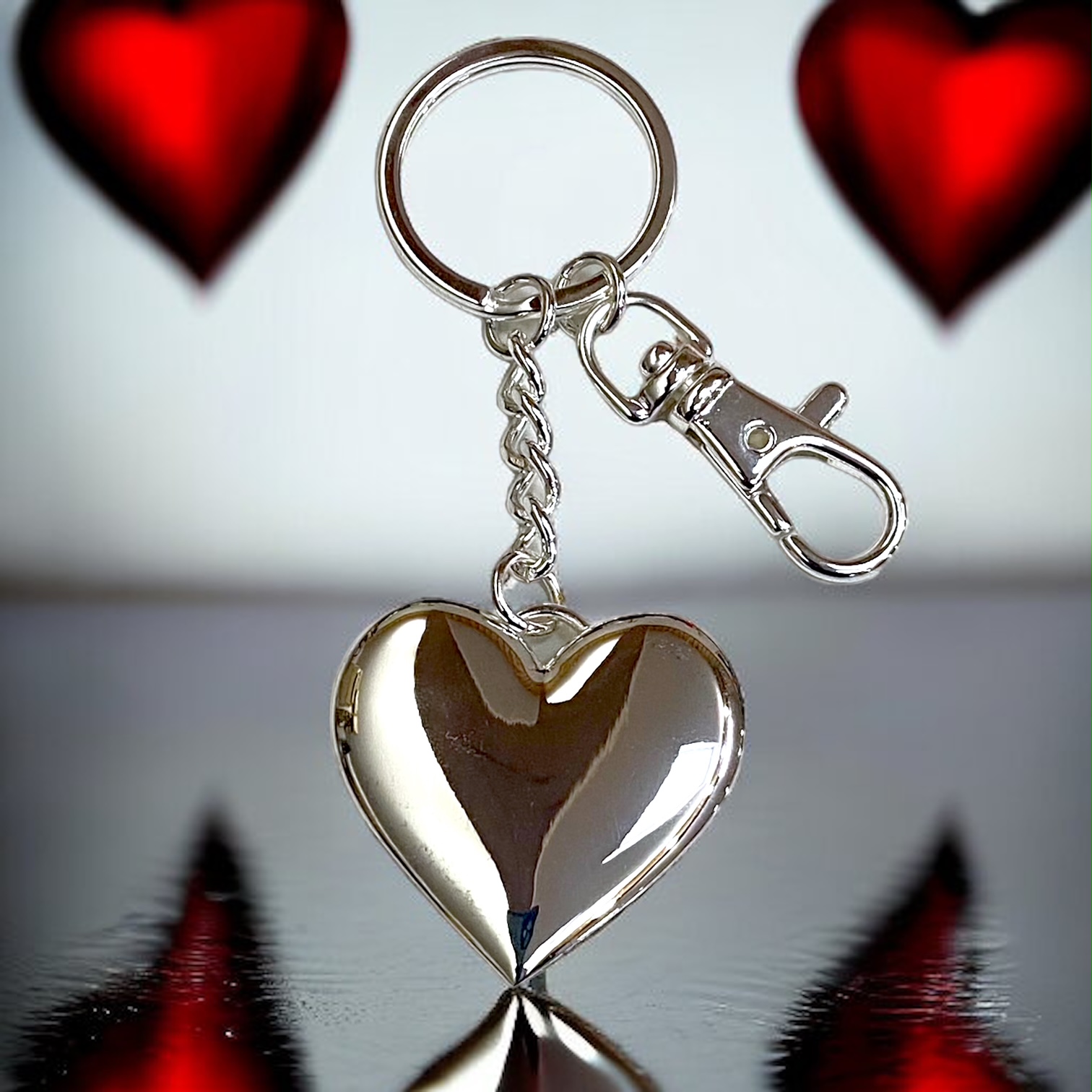 Wunderschöner Schlüsselanhänger Herz an Kette aus versilbertem Material