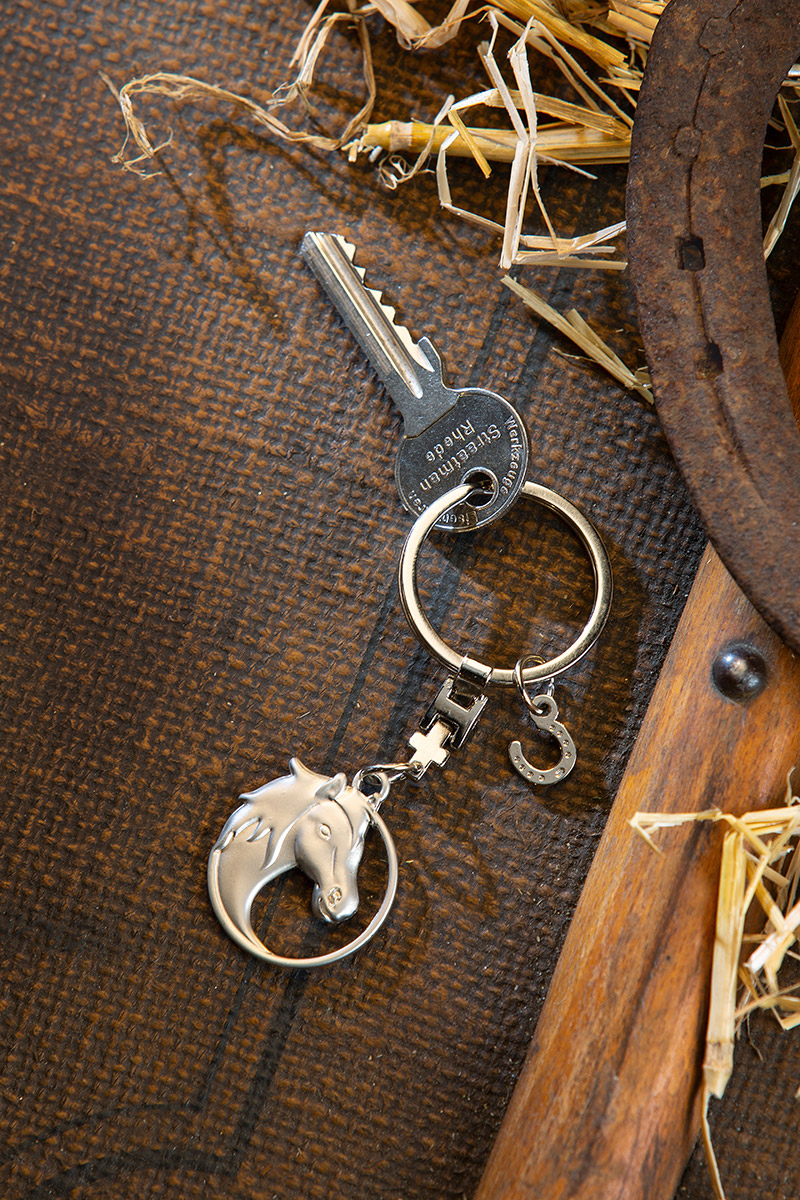 Schlüsselanhänger Pferdekopf mit Hufeisen am Schlüsselring