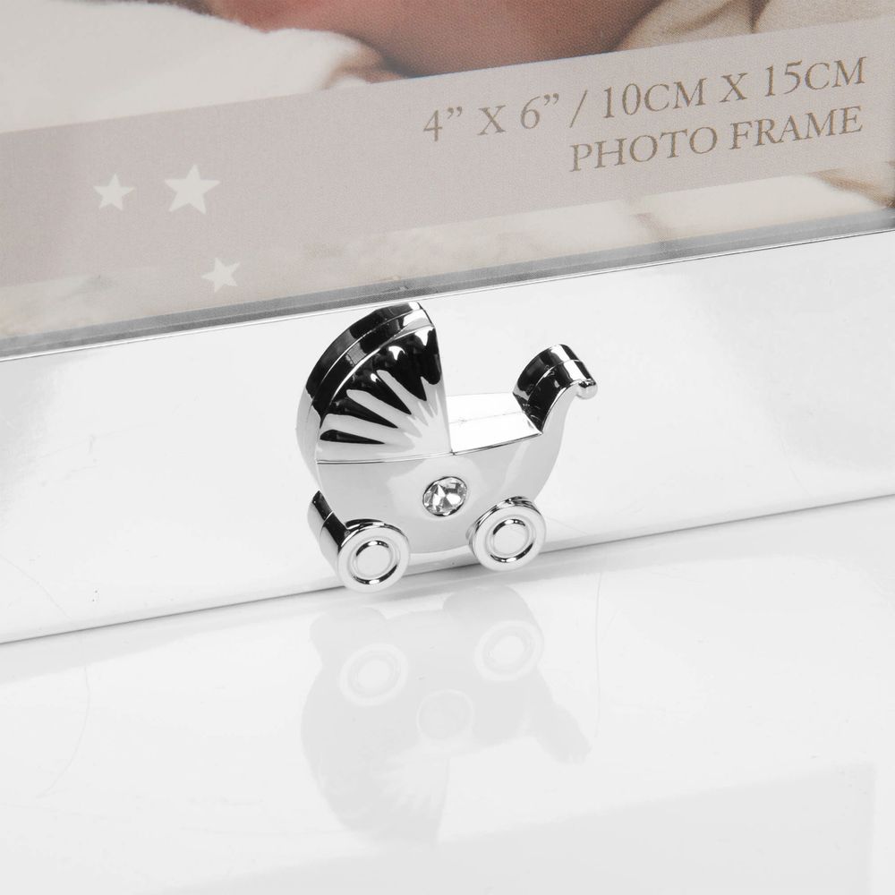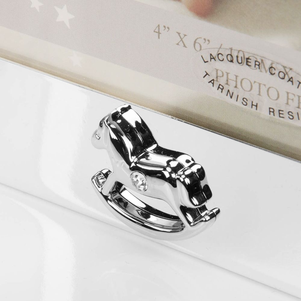 Preview: Der versilberte Doppelbilderrahmen mit Kinderwagen & Schaukelpferd - Fotorahmen für Kinder