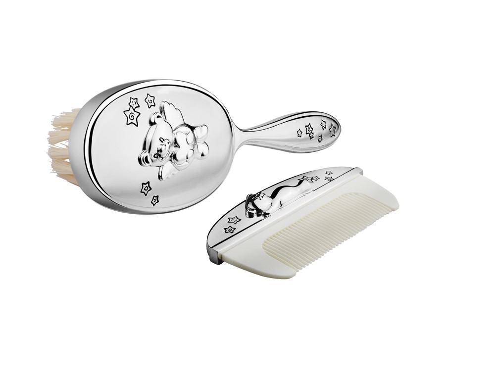 Silbernes Geschenkset Baby Kamm & Bürste – Gravur fähig
