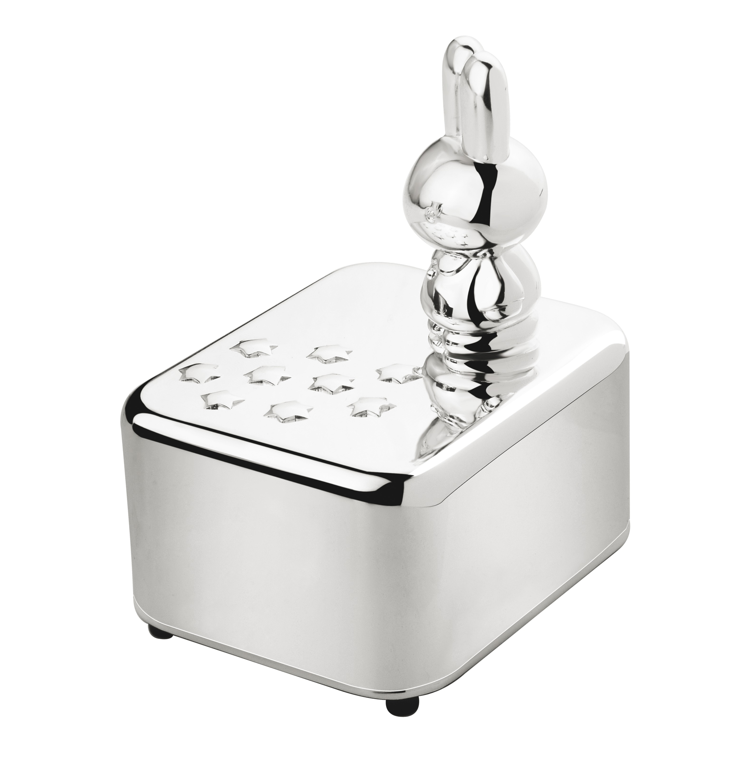 Der stehende Hase mit feinen Sternendetails verleiht der Spieluhr eine besonders niedliche und hochwertige Ausstrahlung.