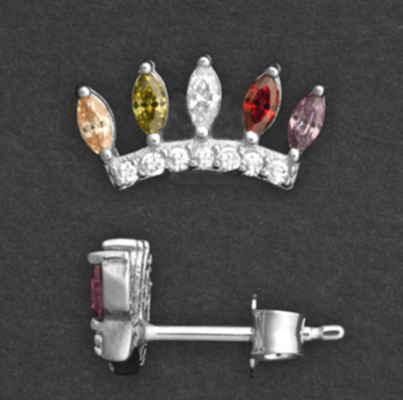 Klein aber fein sind diese Ohrstecker Krone mit 5 farbigen Steinen und 8 kleinen funkelnden Zirkonia. Elegant und trotzdem sehr modern passt dieser Ohrschmuck zu jeder Garderobe, und jeder Altersklasse. Bitte Maße beachten!.