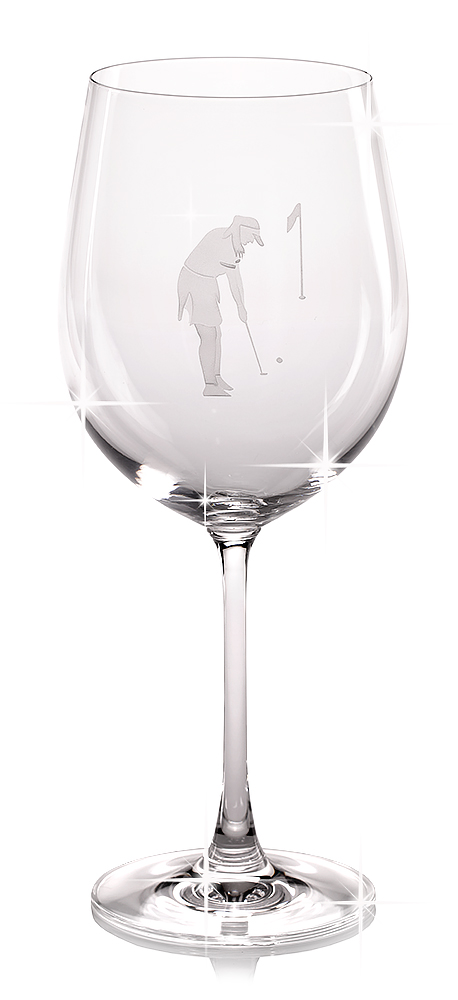 XXL Kristallglas für Wein oder Cocktails mit Gravur Frau beim Golfspiel