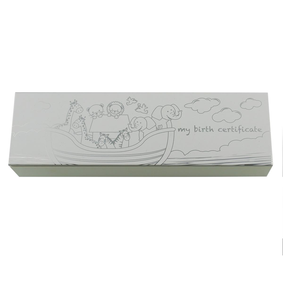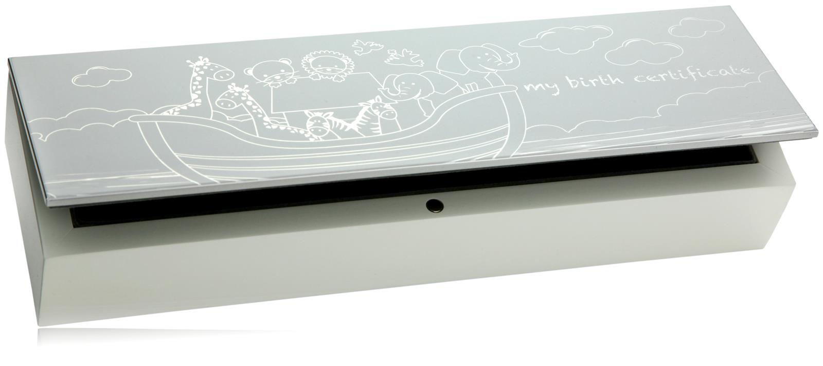 Mobile Preview: Die schöne MDF-Dose für die Geburtsurkunde - Taufgeschenk aus der Arche Noah-Reihe
