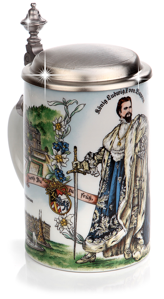 Bierkrug König Ludwig mit Flachzinndeckel - Gravurfähig - Made in Germany