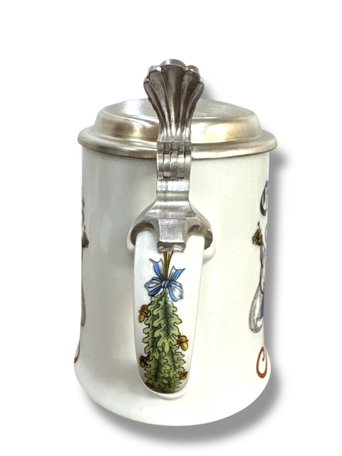 Mobile Preview: Bierkrug für Kegler mit Zinndeckel, Porzellankrug Gut Holz - Gravurfähig