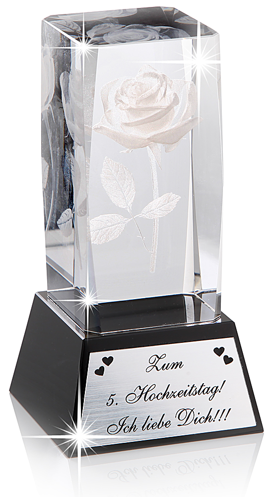 Eine schöne Geschenkidee für Verliebte, zum Geburtstag, Valentinstag oder als Überraschung zum Hochzeitstag ist dieser massive Glasblock mit filigraner 3D-Rose.