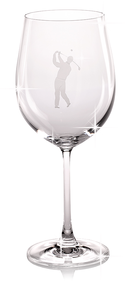 XXL Kristallglas für Wein oder Cocktails mit Gravur Mann beim Golfspiel