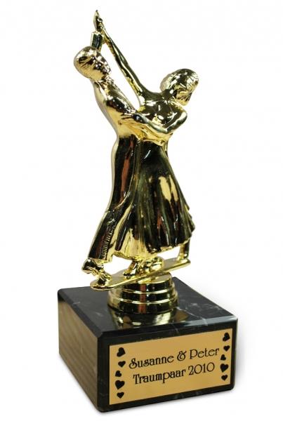 Tanzendes Paar in Gold auf schwarzem Sockel incl. Gravur