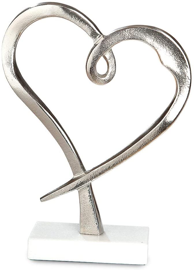 Das edle Alu Herz aus Metall in Silber auf Mamorsockel