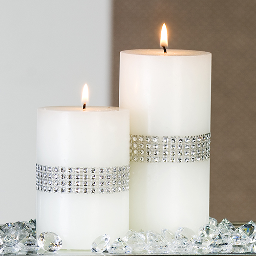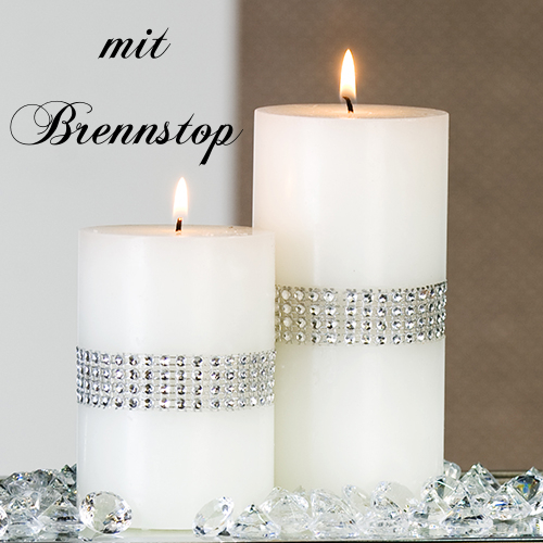 Wunderschön und super edel ist unsere Stumpenkerze Diamant mit eingearbeitetem breitem Strass Band.